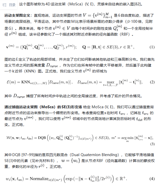 如前面描述,这里的MoSca是一个之前非刚性形变里面的一种嵌入图(Embedding Graph)的表示,这个图的表示:
